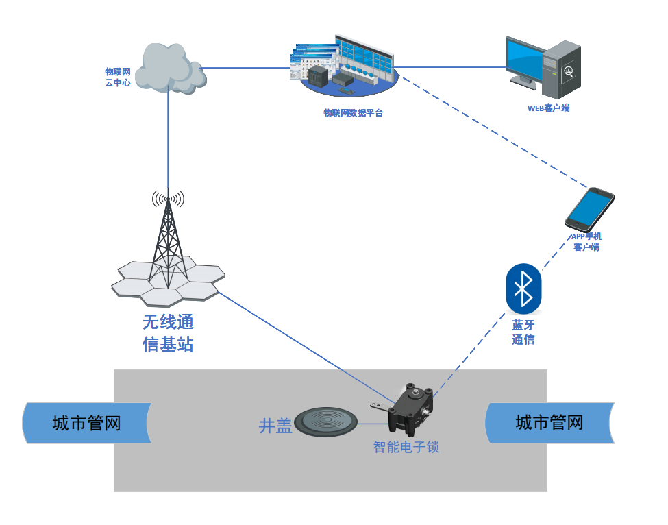 产品特点:专利产品、全304不锈钢芯体、优质合金壳体、空转防扭坏、空转激活:支持直线及单轴旋转开锁方式、整体不锈钢锁门。配合主控单元对权属单位井盖进行定点锁闭和开启管理。井盖电子锁主要攻克井下特殊且复杂环境的难题,所使材料必须经过特殊处理,其防护标准达到IP68,工作温度区间在-30°——70°之间,主要应用在军队、通讯、电力、广电、市政管网等重要机关等权属管理单位。